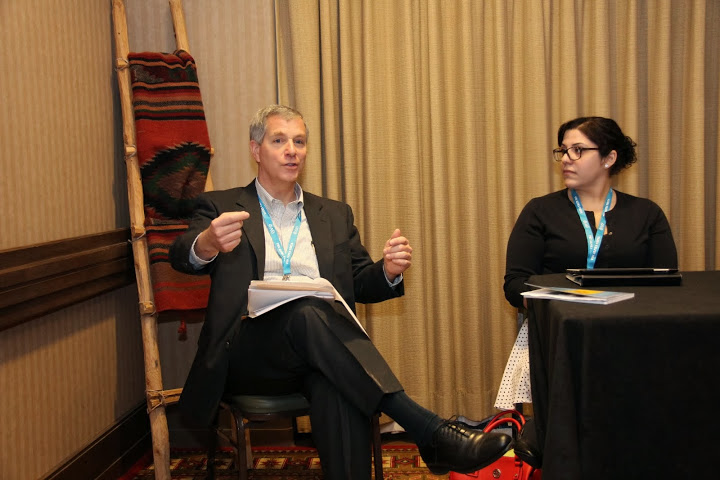 Dr. David Thomas comments on student papers during a panel called "American Revolution" on January 3, 2014, at the Phi Alpha Theta Biennial Convention in Albuquerque, New Mexico. Student paper presenter Danielle Eyre of the University of Wisconsin at Milwaukee is on the right.