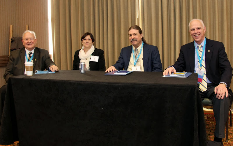 Members of a panel titled "How to Panel: Fundraising and Chapter Activities" take time for a photo on January 3, 2014, at the Phi Alpha Theta Biennial Convention in Albuquerque, New Mexico. They are: (left to right) Dr. Graydon Tunstall (University of South Florida), Dr. Stephenie Carpenter (Murray State University), Dr. Clayton Drees (Virginia Wesleyan College), and Dr. Stephen Carls (Union University).