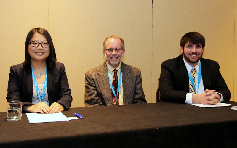 Union history major Charles Snow (right) sits with fellow paper presenter Hongjin Du of Rollins College (left) and panel chair/commentator Dr. John Thomas Scott of Mercer University on January 3, 2014, for a panel on early American history at the Phi Alpha Theta convention in Albuquerque, New Mexico.