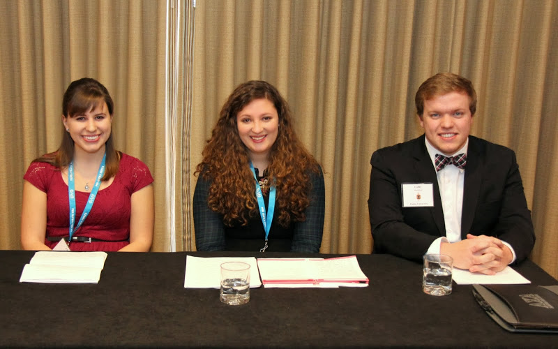 Union history major Colby Benefield sits with fellow paper presenters Claire Yancey of St. Olaf College (left) and Gabriella Angeloni of George Washington University prior to their session on January 3, 2014, at the Phi Alpha Theta convention in Albuquerque, New Mexico.