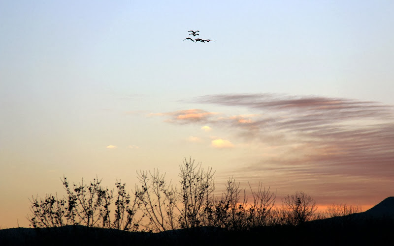 Geese fly over the Tamaya Resort, site of the Phi Alpha Theta Convention, at dawn on January 4, 2014.