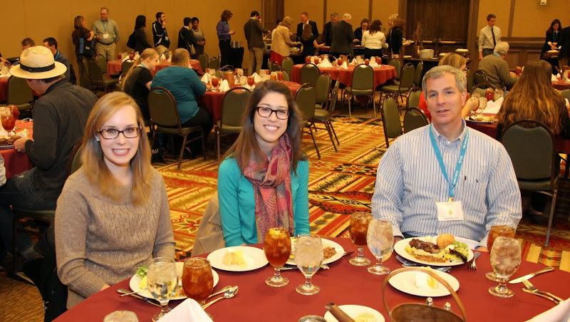 Members of the Union University contingent at the Phi Alpha Theta convention in Albuquerque, New Mexico, prepare to eat lunch on January 4, 2014. They are: (left to right) Heather Stricklin, Gracie Wise, and Dr. David Thomas.