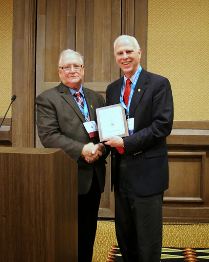 Phi Alpha Theta Executive Director Graydon Tunstall presents an award to Dr. Stephen Carls at the Presidential Banquet on January 4, 2014, for his many years of dedicated service to the society.