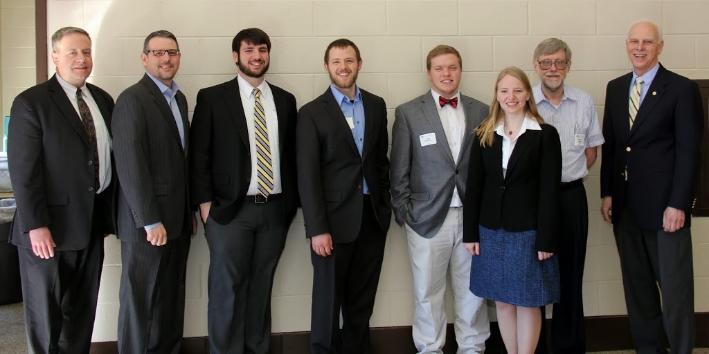 The members of the group from Union University at the Phi Alpha Theta regional conference at Tennessee Tech University on February 22, 2014, join together for a photo at the conference luncheon. They are: (left to right) Dr. Henry Allen, Dr. Keith Bates, Charles Snow, Zach Thompson, Colby Benefield, Grace Morriss, Dr. Terry Lindley, and Dr. Stephen Carls.