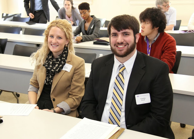 Elaura Highfield, a Union history graduate now doing an M.A. in history at Middle Tennessee State University, sits with Union student Charles Snow prior to a session on "The American Civil War" at the Phi Alpha Theta conference at Tennessee Tech University on February 22, 2014.
