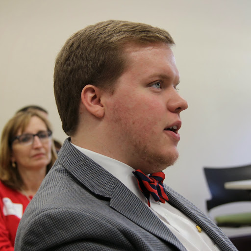 Union's Colby Benefield listens to comments that panel chair Dr. Kent Dollar of Tennessee Tech University made about his paper on the Civil War in Madison County during the Phi Alpha Theta regional conference on February 22, 2014.