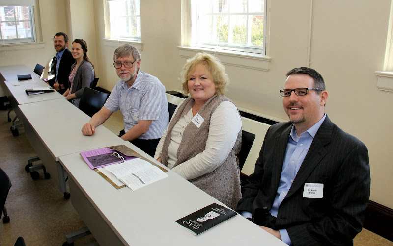 Phi Alpha Theta conference attendees with ties to Union University await the beginning of the session titled "The American Civil War." They are: (left to right) Zach and Courtney Thompson, Dr. Terry Lindley, Lesa Highfield, and Dr. Keith Bates.