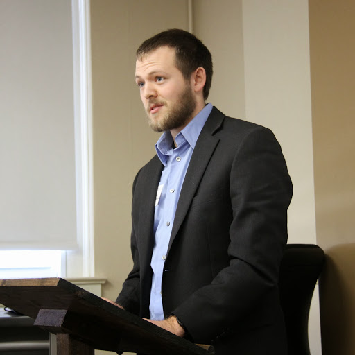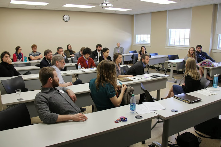 Zach Thompson presents a paper on the topic of "American Church Leadership's Past-Oriented Reaction to Hiroshima" at the Phi Alpha Theta regional conference at Tennessee Tech University on February 22, 2014.