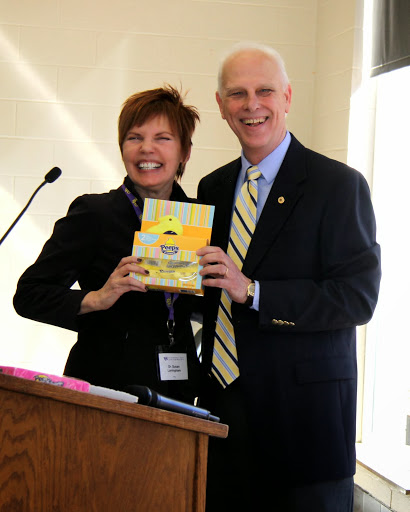 Phi Alpha Theta National President Stephen Carls and Tennessee regional conference coordinator Susan Laningham smile together after he presented her with a package of Peeps at the conference luncheon on February 22, 2014.