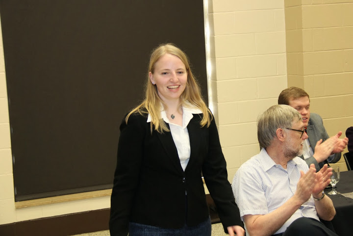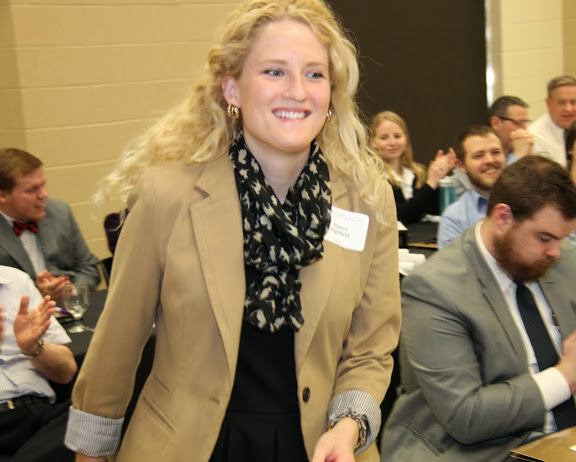 Union history graduate Elaura Highfield, now a second-year graduate student in history at Middle Tennesse State University, moves toward the podium to receive the first-place award for graduate papers at the Phi Alpha Theta regional conference in Cookeville on February 22, 2014.
