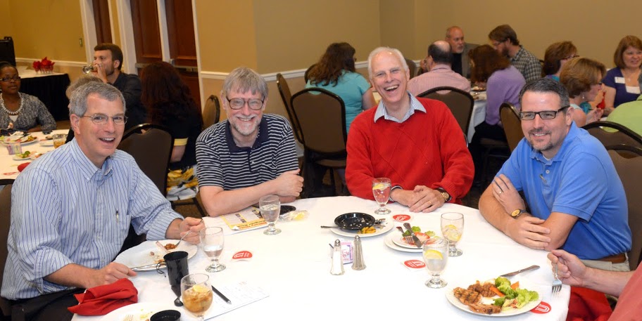 History department members enjoy themselves at the annual faculty/staff luncheon on August 14, 2014. They are: (left to right) Drs. David Thomas, Terry Lindley, Stephen Carls, and Keith Bates. Thomas and Bates received service awards at the luncheon.
