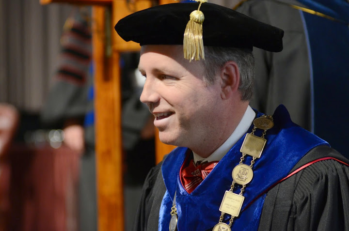 Dr. Samuel "Dub" Oliver, president of the university, smiles as he leaves his first fall convocation on August 22, 2014, as the university's 16th president. Photo by Emily Stookey
