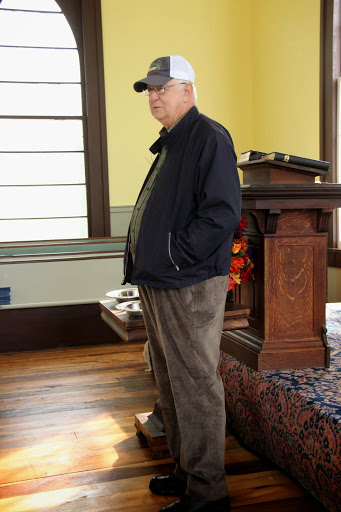 Billy King, president of the Big Black Creek Historical Association, talks about the history of the Denmark Presbyterian Church on November 4, 2014, to the Union University history group that volunteered to do a community service project in Denmark as a part of Union's Campus and Community: A Day of Remembrance and Service.