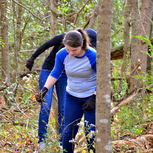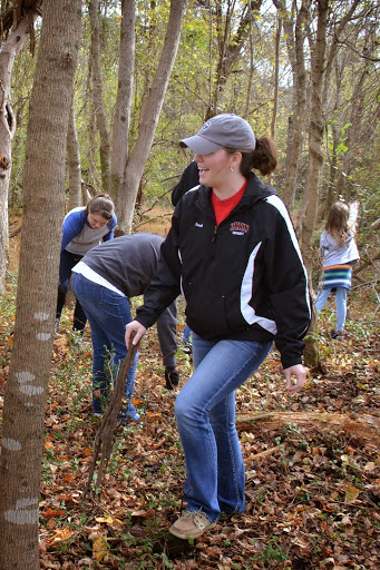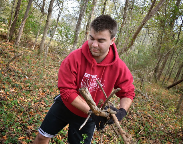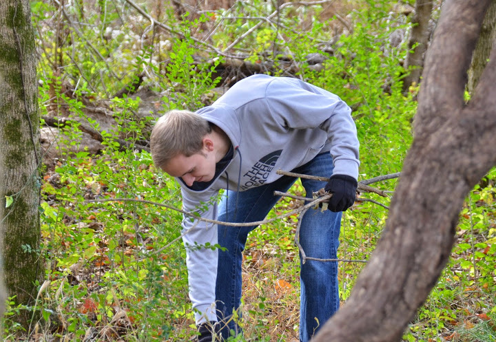 History major Devin Dean helps clear a Civil War campsite of debris in Denmark, Tennessee, on November 4, 2014. He participated in the Phi Alpha Theta/History Department community service project that was a part of Union University's Campus and Community: A Day of Remembrance and Service. Photo by Morris Abernathy