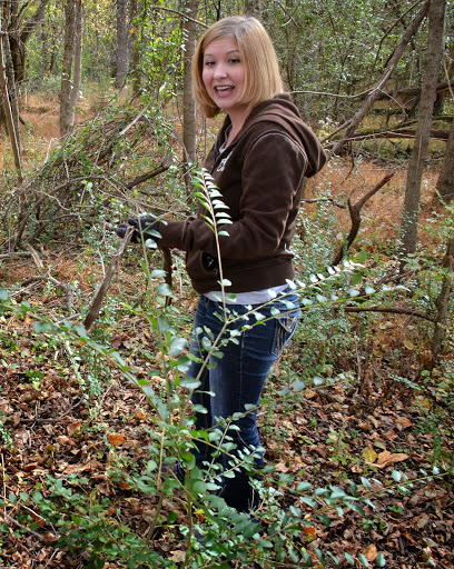 Union student Bree McCuin smiles for the camera during the Phi Alpha Theta/History Department-sponsored community service project in Denmark, Tennessee, on November 4, 2014.