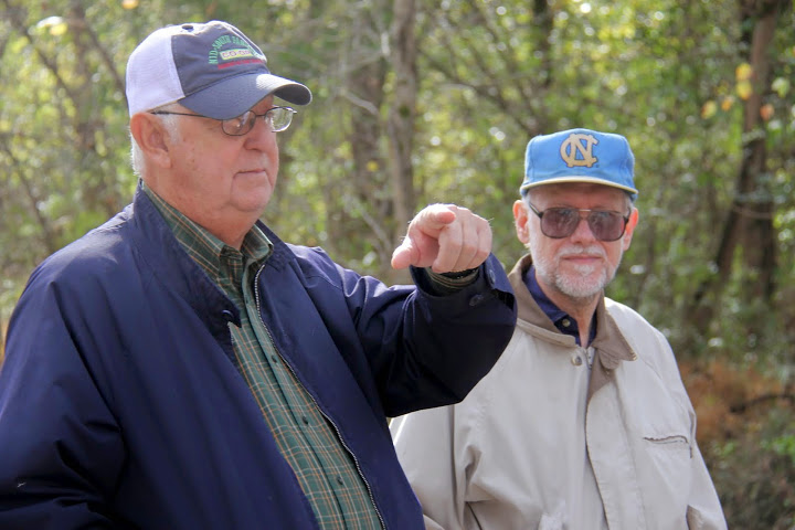 Billy King (left) talks about the Denmark Danes, a military unit in the Confederate army, during a tour of historical sites in Denmark, Tennessee. He gave the tour to participants in a Phi Alpha Theta/History Department community service project that was a part of Union University's Campus and Community: A Day of Remembrance and Service. Dr. Terry Lindley (right) listens intently.