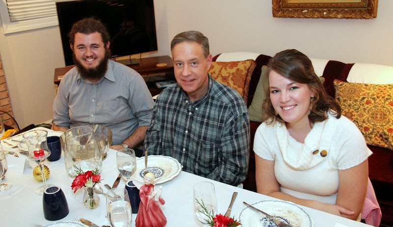 Allen Bradley (left to right), Robert Briley, and Brenda Briley smile for the camera at the history department's annual French Christmas dinner on December 6, 2014.