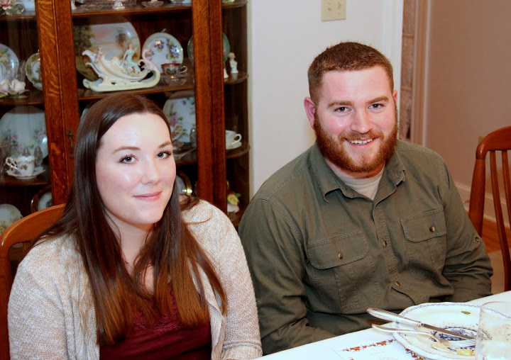 Bethany and Kenton Evans take time for a photo at the history department's Christmas dinner on December 6, 2014.