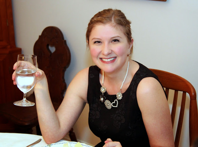 Hannah Jones, vice president of Union's Delta-Psi chapter of Phi Alpha Theta, enjoys a glass of water at the history department's Christmas dinner on December 6, 2014.