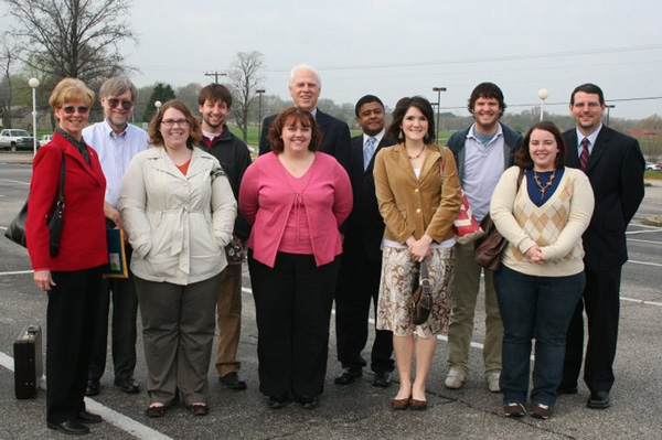 Participants from Union’s Delta-Psi Chapter of Phi Alpha Theta History Honor Society stand together at the start of the Tennessee Phi Alpha Theta Regional Conference in Martin. They are: (front row, left to right) Dr. Judy LeForge, Nikki Henry, Kathleen Cooper, Hannah Holliday, and Mary Thompson; (back row, left to right) Dr. Terry Lindley, Cameron Armstrong, Dr. Stephen Carls, William Woods, Brendon Kuhlman, and Dr. Keith Bates.