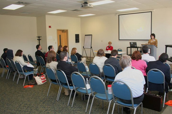 Brendon Kuhlman talks about “The U.S. vs. Pop Music: the Influence of Protest Music and Musicians on the Peace Movement During the Vietnam Era” at a session entitled “War, Politics, and Propaganda.” Austin Peay State University’s Dr. Minoa Uffelman (seated right), the panel chair/commentator, listens carefully to Brendon’s presentation.