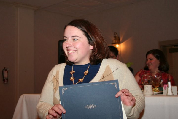 Mary Thompson shows her delight after winning the best paper prize in the category of “Cultural History” at the Phi Alpha Theta regional conference.
