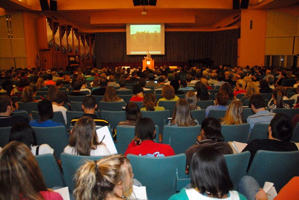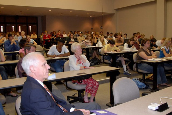 A large audience listens intently in Harvey Hall as Dr. Edward Ayers presents his ideas in his afternoon lecture on October 9.