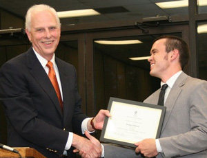 Recognition for Student Paper Presenters at Phi Alpha Theta Regional Conferences - The following students delivered outstanding papers at the 2012 Tennessee Phi Alpha Theta Regional Conference at Middle Tennessee State University on March 24 and were recognized at the history department awards banquet for the quality of their presentations and their faithfulness to Phi Alpha Theta's regional conference system: Savannah German, Caraline Rickard, and Caitlin Roach. Fourth Annual History Alumni Distinguished Achievement Award - For a history alumnus/alumna who has excelled in his or her professional career, in service to the community or the history profession, and/or in support of the activities of the Department of History. This year's winner was Mr. H. Jack Holmes. Recognition for Club Presidents: