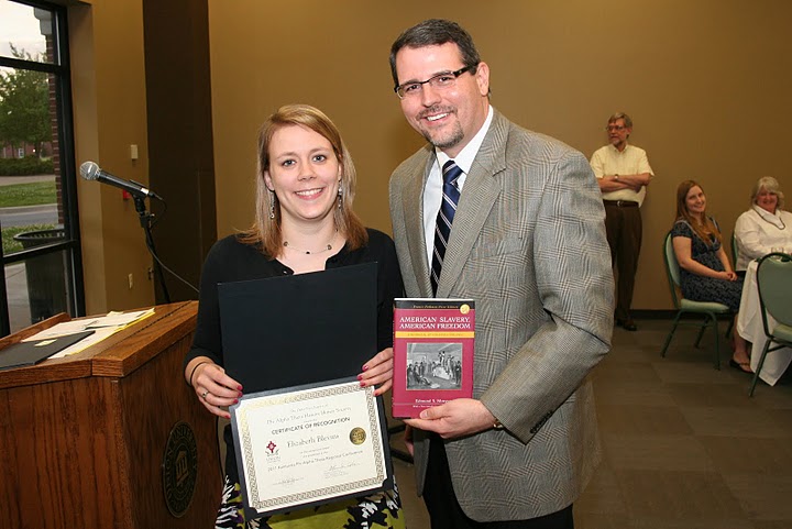 - Second Place - Beth Adams, who wrote on "Nobility or Necessity?: Native Americans' and White Settlers' Claims to Early Kentucky"