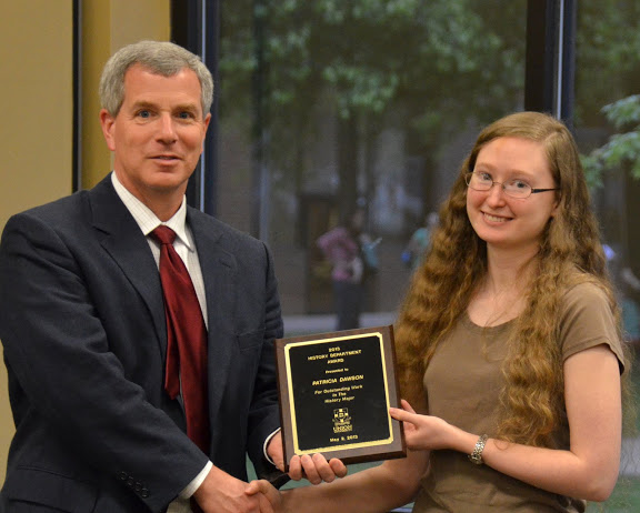 Phi Alpha Theta Scholarship Pin and Academic Excellence Certificate - For a graduating member of the Delta-Psi Chapter of Phi Alpha Theta History Honor Society who has a major in history and who has a grade point average of 3.5 or better in that discipline. This year's winner was Caitlin Roach. History Major Award - For graduating history majors who have done outstanding work in history courses at Union. This year's winners were David Conway, Elaura Highfield, and Caraline Rickard.. History Minor Award - For a graduating history minor who has done excellent work in history courses at Union. This year's winner was Hannah Marsh. The Dr. James Alex Baggett History Research Paper Awards - For the best papers presented as part of the requirements in any history course. Papers are judged on the use of primary sources, the originality of the topic, the historical quality and depth of the study, writing style, appropriate footnotes or endnotes, and a correctly done bibliography. This year's winners were:
