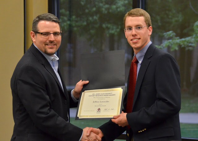 The James Alex Baggett History Research Awards -- For the best original research papers presented as part of the requirements for any history course. This year's winners are: