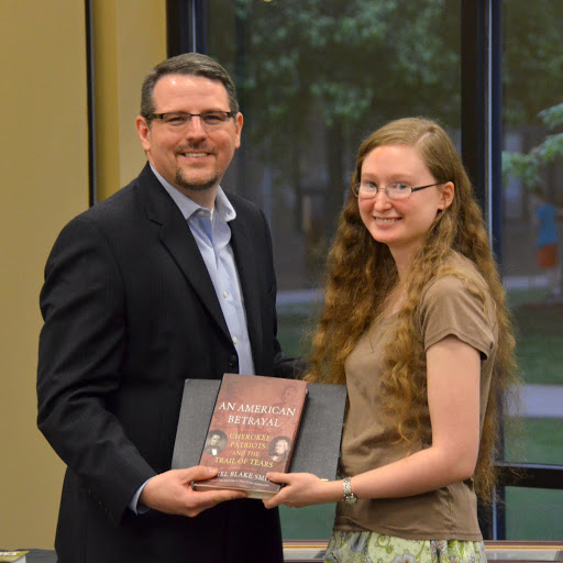 Recognitions for Student Paper Presenters at Phi Alpha Theta Regional Conferences - For Phi Alpha Theta students who delivered outstanding papers at the 2014 Tennessee Phi Alpha Theta Regional Conference at Tennessee Tech University on February 22. They were: Colby Benefield, Grace Morriss, Charles Snow, and Zachary Thompson. Allie Durham submitted a paper but was unable to attend the conference because of illness. The four students in attendance received books and certificates of commendation. Durham received a book only. Sixth Annual History Alumni Distinguished Achievement Award - For a history alumnus/alumna who has excelled in his or her professional career, in service to the community or the history profession, and/or in support of the activities of the Department of History. This year's recipient was Angie B. Nichols Recognitions for Student Club Officers: