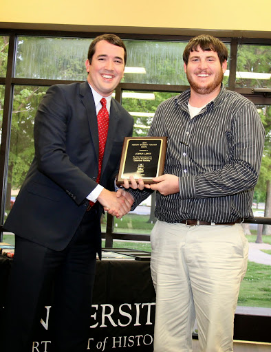History Student Teacher Award — For a graduating history major with a secondary education minor who has shown an exceptional commitment to achieving excellence in classroom teaching. This year's winners were Macon Bullock and Megan Ledbetter.