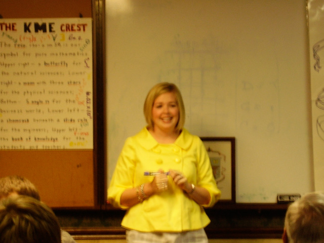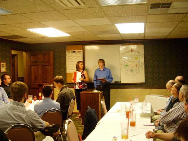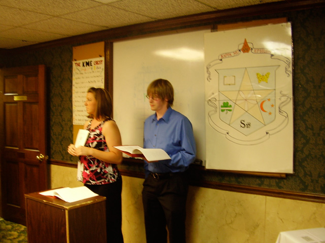 Chapter officers Kristen Kirk and Will Sipes performing their portion of the initiation ceremony