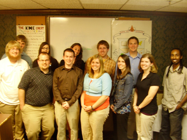 New Initiates (front, from left: Seth Kincaid, Joshua Armacost, Jacob White, Lauren Medforth, Kayla Hauss, Rebecca Eaton, Mikias Seid; back, from left: Kyle Harris, Emilie Huffman, Carrie Moore, James Jomes, Peter Boedeker)
