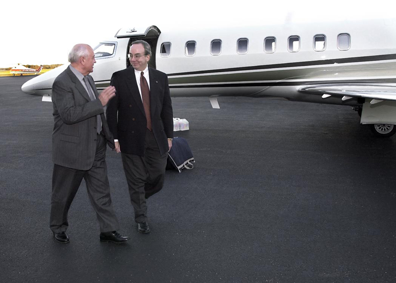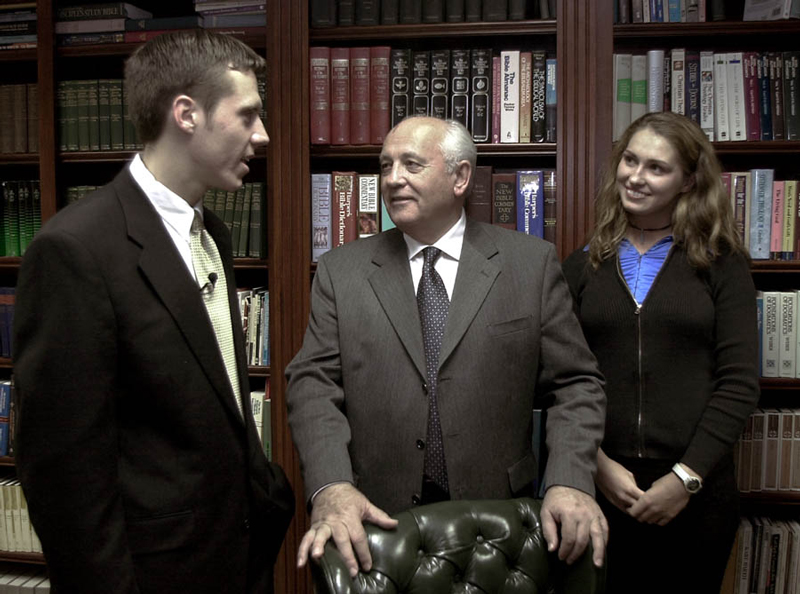 President David S. Dockery presents a Russian-language Bible to former Soviet President Mikhail