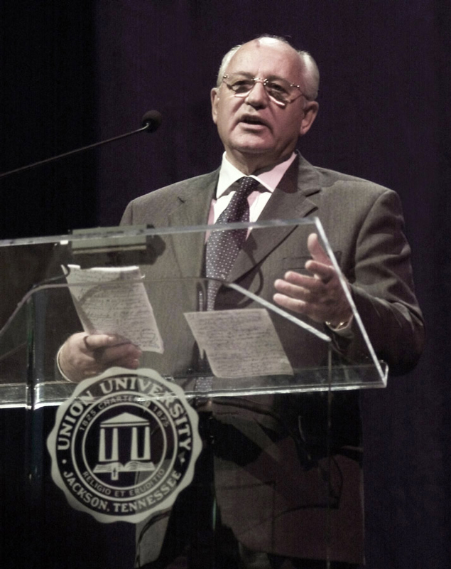 Gorbachev at the conclusion of an address by the Russian statesman. |