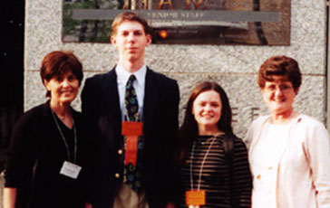 Winners of the West Tennessee Regional Science Fair Competing in the 50th Annual Intel International Science Fair, Philadelphia, PA! From Left to Right: Ms. Sandra Bethel, Greenfield HS, teacher of Mr. Seth Johnson; Mr. Seth Johnson, winner of WTRSF's Senior Physical Science Division; Ms. Michelle Johnson, winner of WTRSF's Senior Biological Science Division; and Ms. Marion Pitts, Westview HS, teacher of Ms. Michelle Johnson |