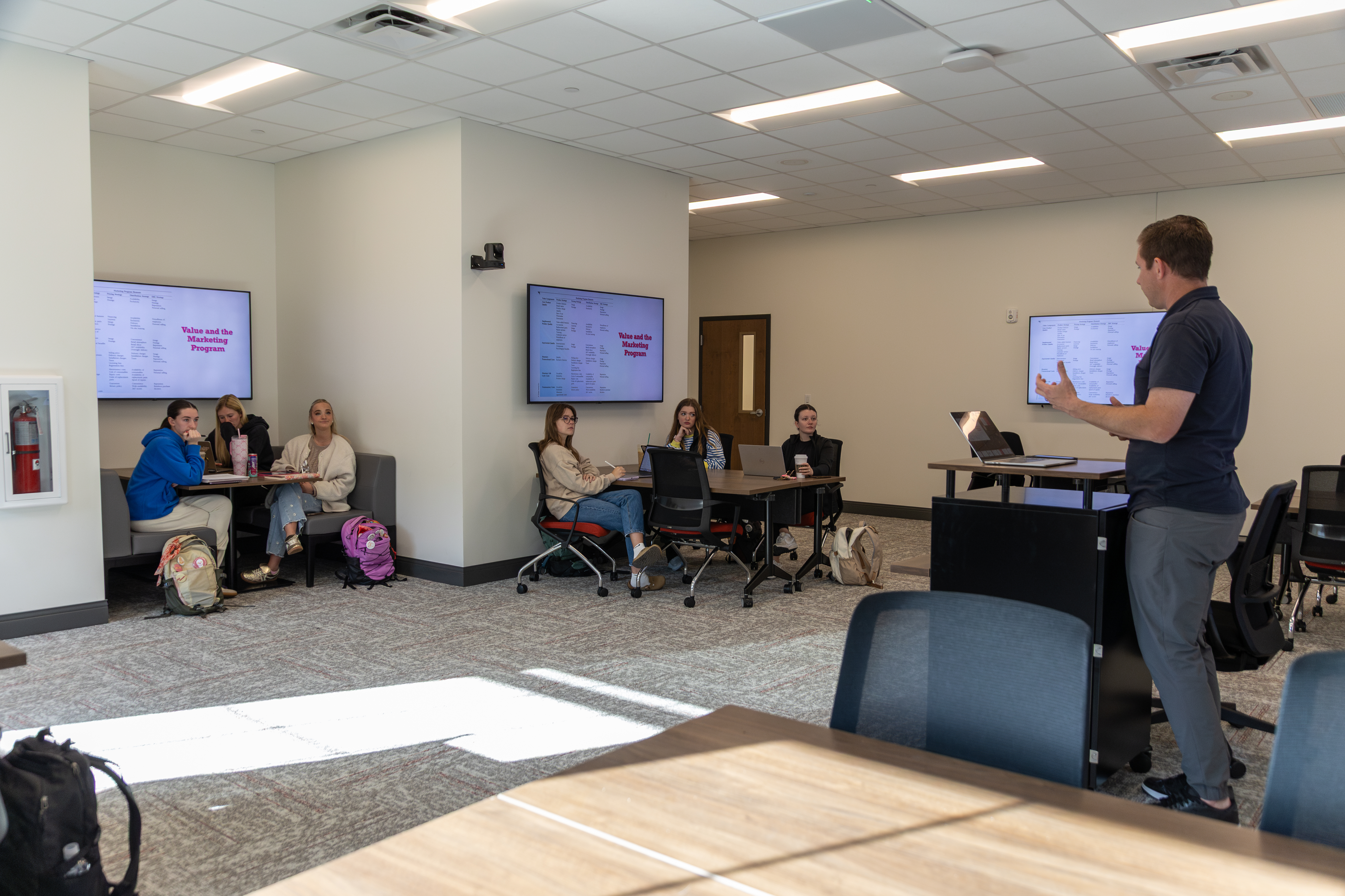 Opened in 2025, The Ethos Forum houses the McAfee School of Business, the departments of Computer Science and Engineering, and the HUB, a collection of innovative spaces that enable students, faculty, and community members to design, collaborate, create, and innovate.