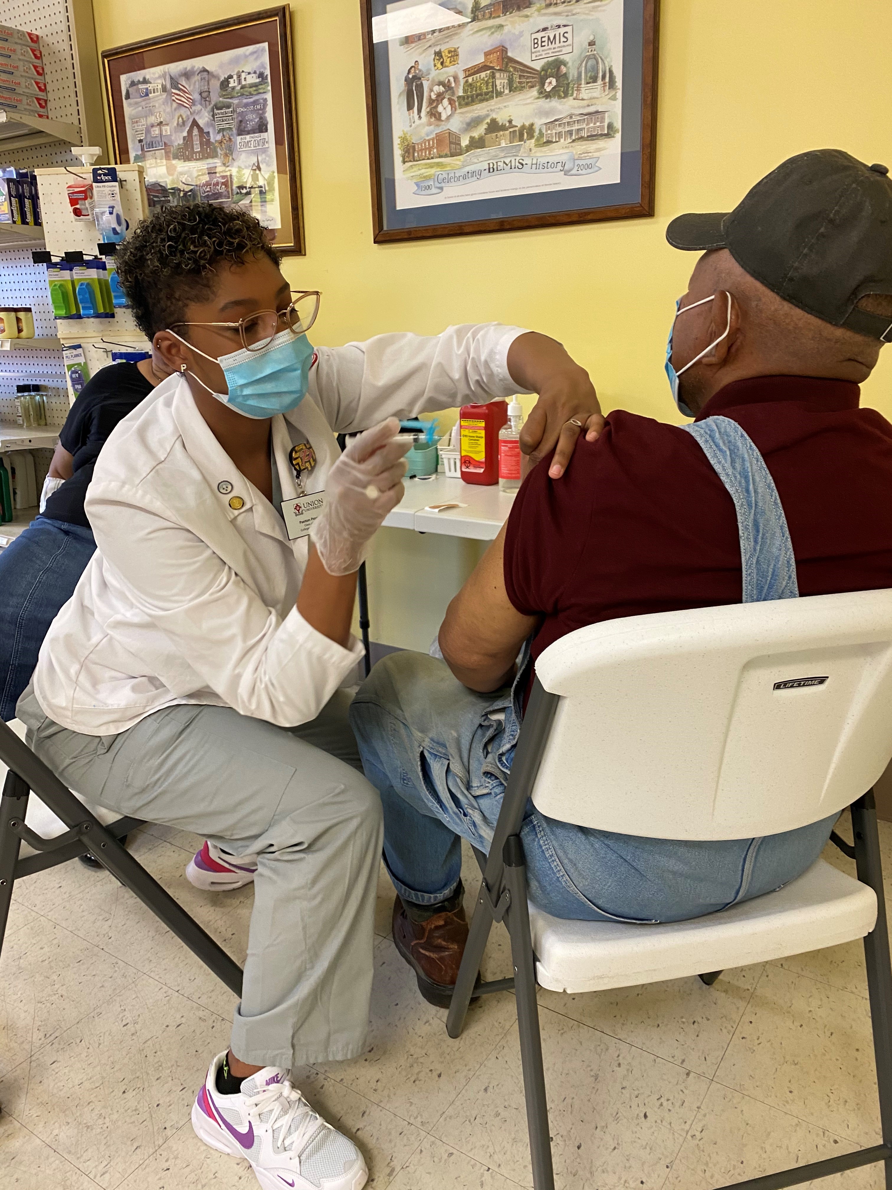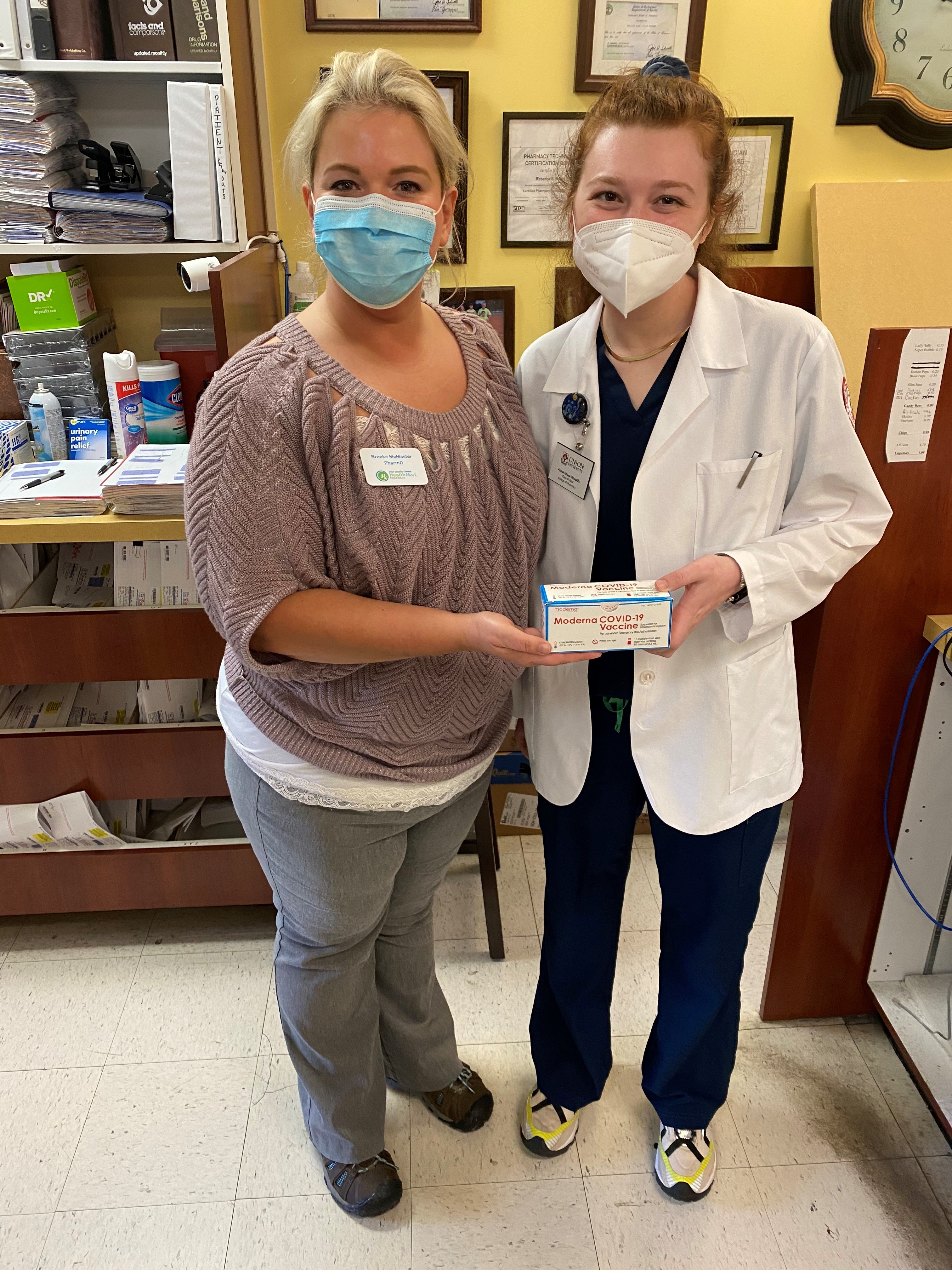 Apr 22, 2021 - First-year students Paeton Poynter and Anna Grace Woodis joined UUCOP alumnus, Dr. Brooke McMaster ('12), to administer Moderna vaccines at Vantreese Discount Pharmacy.