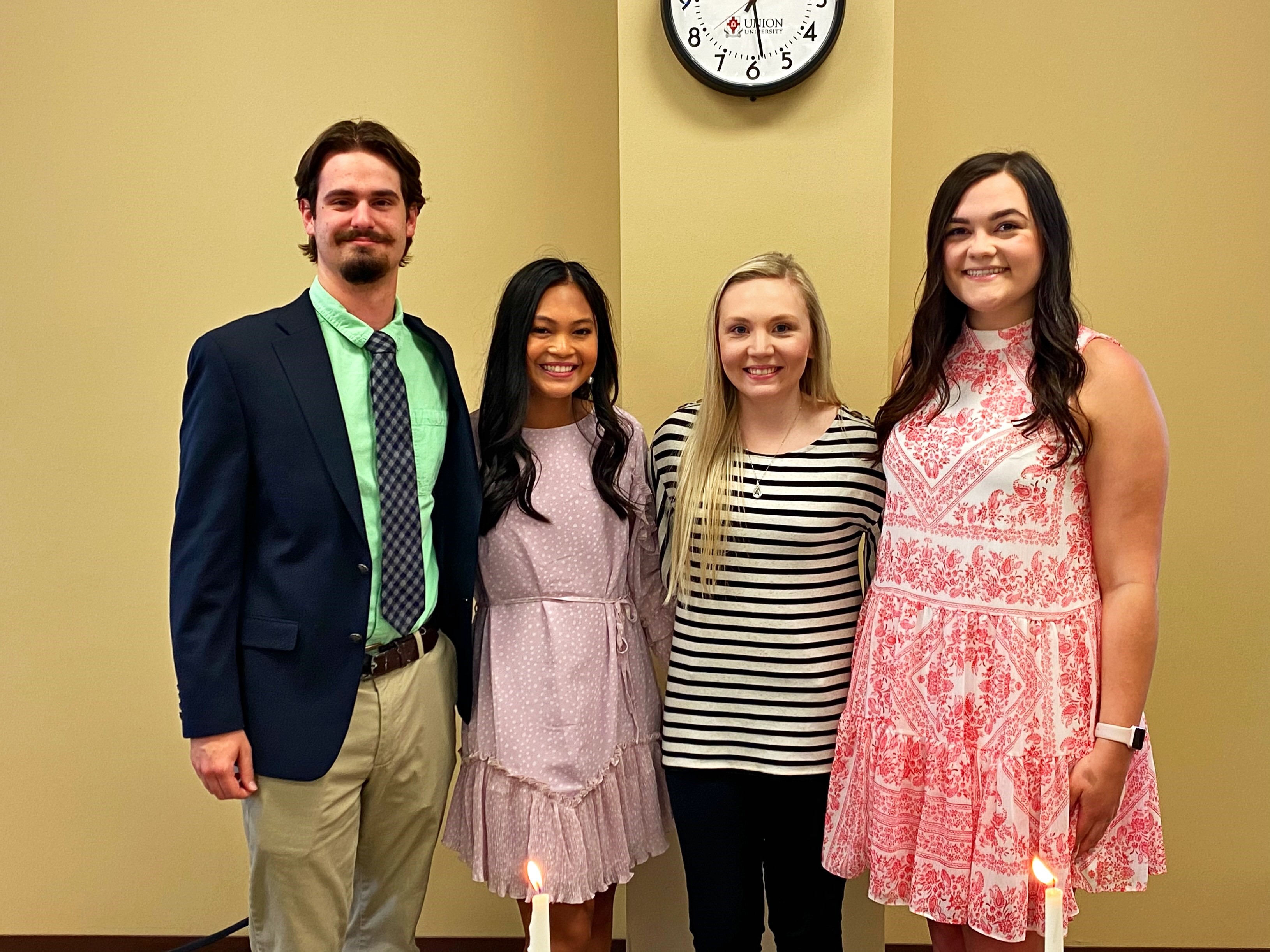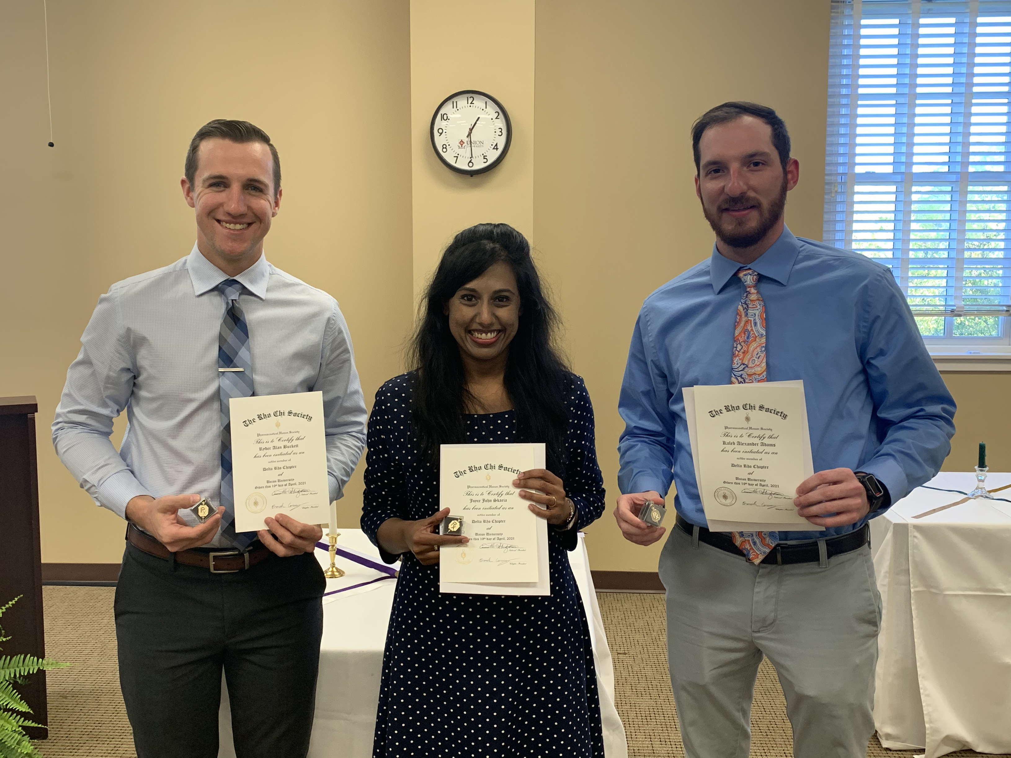 May 10, 2021 - The annual Rho Chi Initiation Ceremony was held April 19th and seven new members were inducted into the UUCOP Delta Rho Chapter. Initiates include Kaleb Adams, Ryder Burkett, and Joyce Skaria from the class of 2022, and Tori Crider, Natalie Crockett, Maria Geromo and Caleb Greer from the class of 2023.